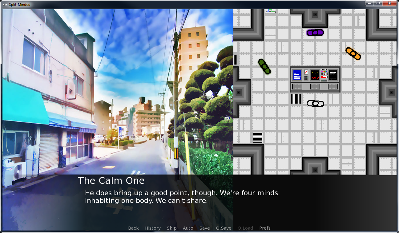 This game is intended to be a fusion of a dating-sim / visual novel and a top-down shooter.